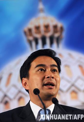 4月16日,泰国总理阿披实在位于曼谷的总理府参加新闻发布会。泰国政府发言人帕尼坦当日说,总理阿披实不会解散国会下议院。泰国《民意报》援引帕尼坦的话报道说,阿披实认为,解散国会下议院,举行新的大选,不能弥合不同政见者之间的裂痕,而会造成更激烈的政治对抗,使得政治局势变得更加混乱。 新华社/法新