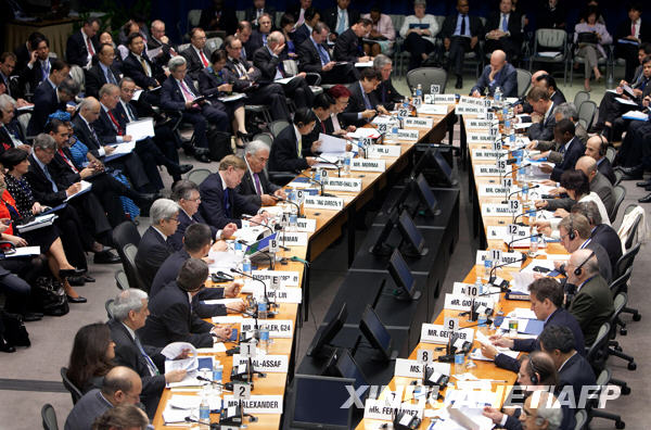 这张4月26日由国际货币基金组织(IMF)发布的照片显示的是,世界银行和国际货币基金组织联合发展委员会会议现场。4月26日,世界银行和国际货币基金组织(IMF)联合发展委员会会议在美国华盛顿举行,会议主要讨论在全球面临金融危机和经济衰退的背景下如何进一步促进世界经济与社会的发展等问题。新华社/法新