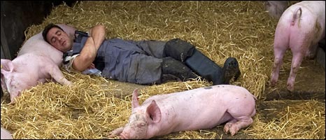 北京时间5月6日消息,据英国媒体报道,最近甲型H1N1流感让人极度紧张,原来被称作“猪流感”的流感竟然让猪一度成为全世界关注的焦点。世界卫生组织已经给猪“平反”,但从这件事上可以看出,虽然我们经常吃猪肉,对这种动物其实并不关心,也不了解。猪究竟过的是一种怎样的生活?为了找到答案,英国公司通信顾问、业余演员理查德·德科斯塔最近和猪同吃同住了四天。这四天他是怎么过来的呢?