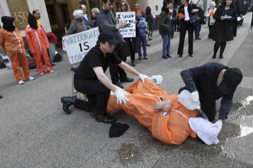 人权组织在纽约街头示范布什政府曾经使用的“水刑”