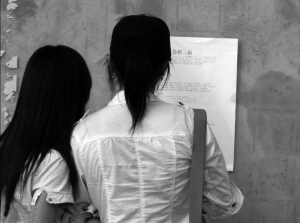 两名女孩在观看启事