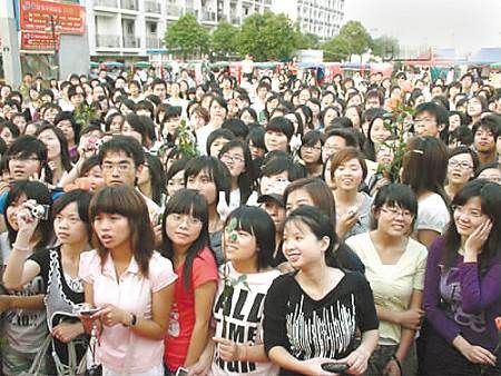 昨天下午,这个特殊的庆生派对在宁波一所高校北区宿舍商业区的中心广场上举行。下午4点,光鲜的舞台早已搭好,舞台上拉着巨幅的喷绘背景,还有乐队演奏着欢快的乐曲。