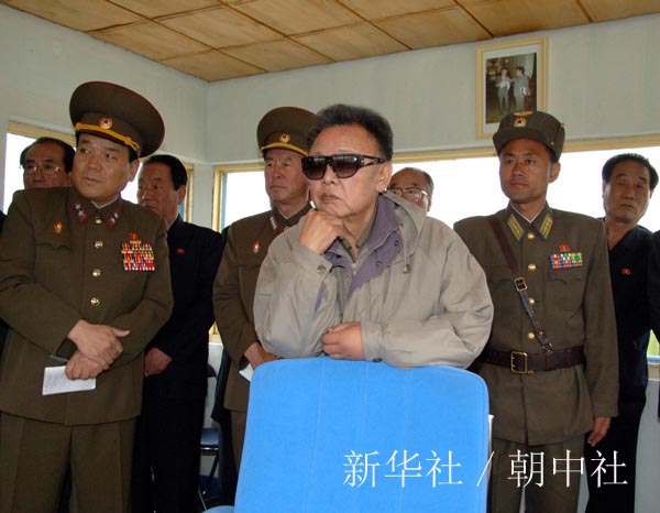 朝鲜中央通讯社5月22日提供的照片显示,朝鲜最高领导人金正日(前)近日视察朝鲜人民军空军814部队。新华社/朝中社