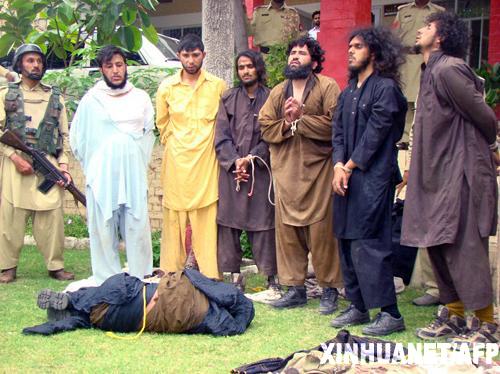5月19日,巴基斯坦安全人员在莫哈曼德看守被捕的塔利班武装人员。 新华社/法新