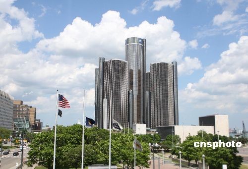 美国汽车巨头通用预期将于6月1日正式宣布寻求破产保护,其位于底特律的总部如今成为全球焦点。 中新社发 魏晞 摄
