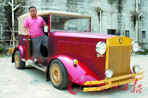 本报东莞讯 (记者钟达文、黄维)这是一个“山寨”横行的年代。“山寨”手机、“山寨”电脑、“山寨”一切可以“山寨”的玩意儿……现在,连世界著名的劳斯莱斯老爷车也硬是被咱们东莞横沥镇的汽车发烧友阿伟一锤一钉,耗时一年“山寨”了出来。