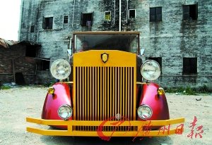 对于这辆红色的“劳斯莱斯老爷车”,阿伟得意之情溢于言表:“它的最高时速可达200公里,而且持久力强,跑长途都没问题!”阿伟一般是自己在工业区里开着玩。