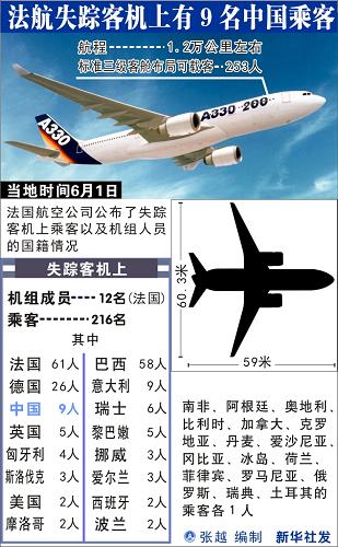 图表:法航失踪客机上有9名中国乘客 新华社发