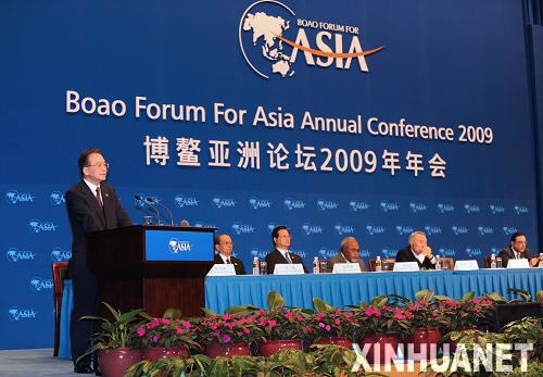 4月18日,国务院总理温家宝在博鳌亚洲论坛2009年年会开幕式上发表主旨演讲。新华社记者 马占成 摄