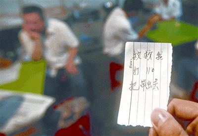 吃饭间,一名女子始终低着头,机械地往嘴里扒饭。一旁的一男一女兴致高涨,不停地说话,操着外地口音。几分钟后,这一男一女从餐桌起身,走到餐馆门口打稀饭。这时,坐在桌旁的女子迅速塞来一张纸条。王师傅的妻子吓了一跳,她走到厨房,展开蜷曲的纸条,上面赫然写着“救救我,打110”。王师傅赶紧报警,他担心对方在民警来前就离开,还一再叮嘱妻子,如果对方付钱结账,就尽量拖延时间。