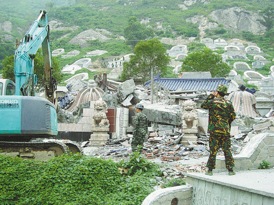 浙江在线06月10日讯 远看是豪华别墅,走近后方知是坟墓。昨天下午,瑞安这座引起极大关注的豪华坟墓终被拆除。