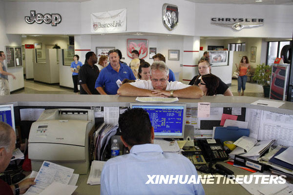 6月9日,在美国亚利桑那州菲尼克斯市的一家克莱斯勒经销商办事处,消费者排队等待办理清算销售相关事宜。美国最高法院当日做出裁决,允许意大利汽车厂商菲亚特收购美国汽车巨头克莱斯勒股份。此前最高法院曾因退休基金持有者上诉而叫停汽车业巨头克莱斯勒破产重组的并购程序。新华社/路透