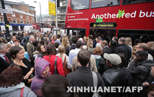 伦敦地铁系统职工于当地时间9日晚7点开始进行长达48小时的罢工,导致伦敦地铁的11条线路中有5条完全停运,仅有1条仍在正常运行,该市公共交通体系几近瘫痪。新华社/法新