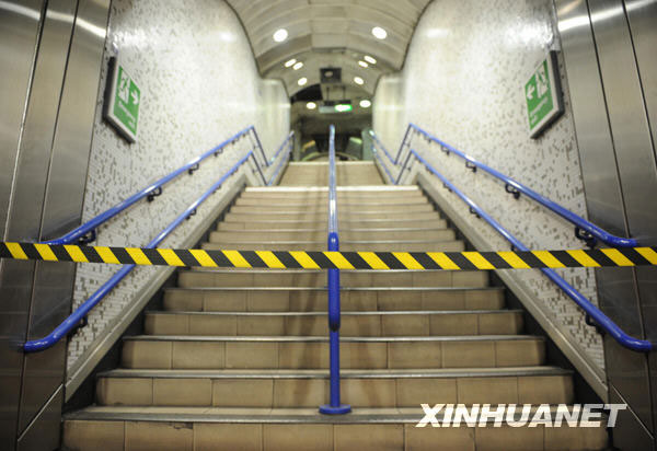 6月10日,在英国伦敦格林公园地铁站内,一条换乘通道因罢工被封闭。新华社记者曾毅摄
