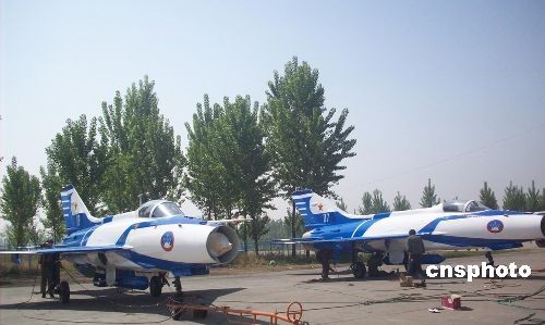 国庆60周年将在北京天安门广场盛大阅兵仪式上亮相的空中飞行表演机,已于5月中旬由中航工业成飞公司完成其喷漆涂装任务。中新社发