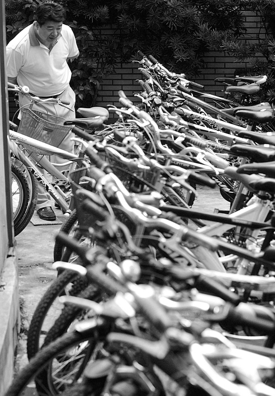蓝色的车身,上面印着TREK的字母,踏脚处的齿轮是一圈又一圈。“美国前总统小布什曾经骑过这个牌子的车。这辆车的车身就得1000多元呢。对了,还有那液压的前叉,也得上千元。”说话的是接到民警通知前来领车的,这是位自行车发烧友。“你看这辆,折叠式,九成新的,原价要3000多元呢。”记者尝试着抬起这辆车,觉得很轻。那位车友说,这车好些部件都是进口的,贵着呢。