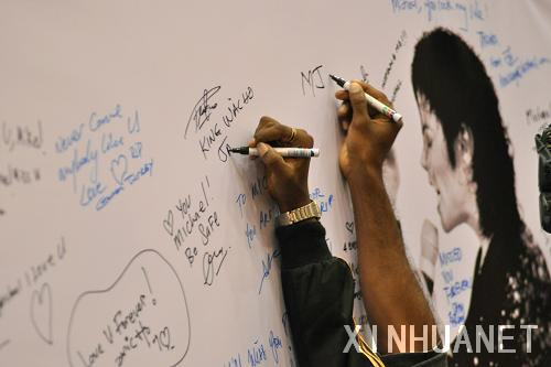 6月28日,在马来西亚中部的雪兰莪州,参加纪念美国流行乐坛巨星迈克尔·杰克逊活动的人在白板上留言,表达对他的思念。马来西亚1000多人在雪兰莪州一家商场举办活动,以播放迈克尔·杰克逊生前的MTV、签名留言、模仿迈克尔·杰克逊的经典舞蹈动作等形式,纪念迈克尔·杰克逊。新华社发(张纹综摄)