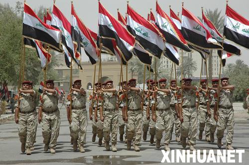 6月29日,伊军仪仗队参加美伊巴格达城安全控制权交接仪式阅兵。当天,美军把巴格达城安全控制权正式交给伊拉克安全部队。按照美伊双方协议,驻伊美军战斗部队应该在6月30日最后期限前全部撤出伊拉克城镇。新华社发(巴夏尔摄)