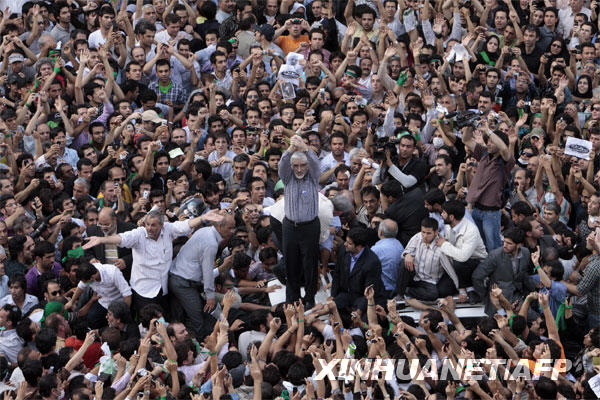 6月15日,伊朗前总理穆萨维在首都德黑兰参加其支持者举行的大型集会。据伊朗新闻电视台当日报道,在伊朗第10届总统选举中失利的伊朗改革派总统候选人、前总理穆萨维当日在其支持者举行的大型集会上说,他已经作好参加重新投票的准备。 新华社/法新