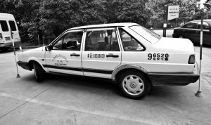 按照规定,在桑塔纳前后竖起两根杆子,记者仔细量了量,完全按照成都媒体报道的标准:车头离杆不到5厘米,车尾不到3厘米。
