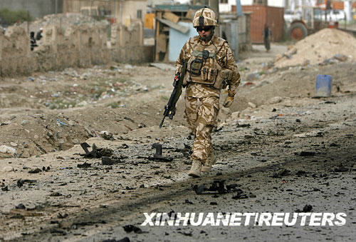 资料图片:2008年8月11日,国际安全援助部队的一名英军士兵在爆炸现场查看。新华社/路透