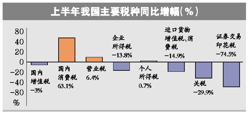 ● 6月财政收入增19.6% ● 上半年印花税降74.5%