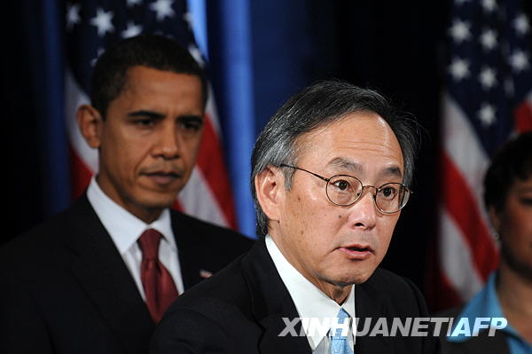 美国能源部长的华裔科学家、诺贝尔物理学奖得主朱棣文(右)