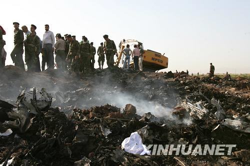 新华社记者在事故发生的村庄看到,客机坠毁在一大片开阔的农田里,在地面形成了一个宽约50米、深约10米的大坑。大坑内外及附近都散落着飞机的残骸和碎片,空气中弥漫着航空汽油和物品烧焦的气味。大批身穿红白两色制服的救援人员正在现场搜寻,希望尽快寻找到失事飞机的黑匣子。不少附近村民聚集在现场周围,一些遇难乘客的家属也赶到现场,他们因失去亲人而放声痛哭。