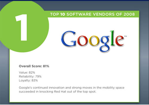 谷歌高居2008年的最佳软件公司榜首 资料图片
