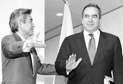 7月17日,美国助理国务卿坎贝尔(右)在日本受到热烈欢迎。
