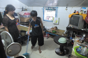 现在,袁大姐初中毕业的儿子也来到这间出租房。袁大姐说:“他学习成绩不好,我们也没钱供他继续念书,就让他到杭州来打工,住就住在一起,又可以省一点了。早点把建房子的钱还掉。”