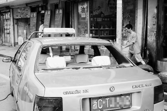驾驶浙CT505×的陈师傅,亲眼目睹了同行车子被砸的场景,“就在惠民路附近,几个男的,直接用砖头把车子后挡风玻璃砸碎了,车里面的司机吓得跑出很远。”