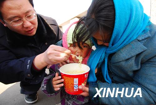 1月15日,山东潍坊市社会救助站的工作人员为社会流浪人员送来食物。春节临近,山东潍坊市社会救助站加大对社会流浪人员的帮扶力度,根据流浪人员本人意愿,对无力回家的人员提供食物,并购买车票送他们回老家过年;对不愿回家的流浪人员,接到社会救助站,免费提供食宿,并将提供年夜水饺,让社会流浪者温暖过春节。 新华社发(王立军 摄