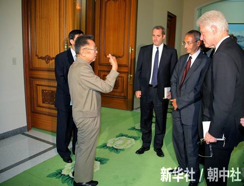 克林顿4日突访朝鲜,和金正日会谈1小时15分钟左右。金正日随后宴请克林顿,这顿饭吃了大约两小时。加在一起,克林顿和金正日的见面时间超过3小时。和克林顿一道前往朝鲜的有他在白宫时期的办公厅主任约翰·波德斯塔、前国务院韩国科科长戴维·斯特劳布和私人医生罗杰·班德。
