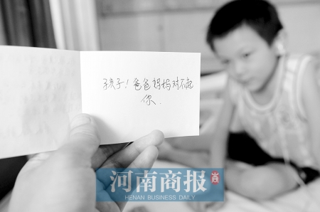 昨日下午5时许,记者看到昊昊父亲留下的信件,信上说,为了给孩子治病,已花了4万元,作为农民的他已借遍亲朋好友,卖尽家产。他只能坏良心,含着泪写下这封信……