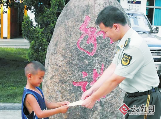 8月8日上午,小家新为省下车钱,步行17公里的山路来到支那边防派出所将信交到“警察爸爸”贺剑手中。