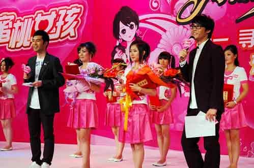 中新网8月17日电 “寻找蜜桃女孩”全国选拔赛经过火热的网络票选后,华北东北赛区决赛于8月15日下午在北京上演,十位网络票选最高的选手展开了激烈地角逐,争夺两张晋级上海总决赛的入场券。经过时装秀、机智问答、广告创意表演以及才艺展示四个环节的比拼,来自山西的9号选手李冰霜获得冠军,1号选手来自北京的龚丹获得亚军,两人携手晋级8月将在上海举行的总决赛。而选手中舞蹈感觉酷似“芙蓉姐姐”的16岁小选手,最终未能顺利晋级。