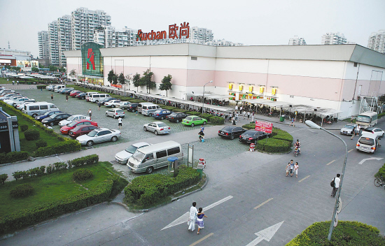 记者开车先到欧尚的室外停车场,无论你怎么停,这儿都没有人管理。许多顾客买了东西之后,会从绿化带中间穿过,从停车场中间走。