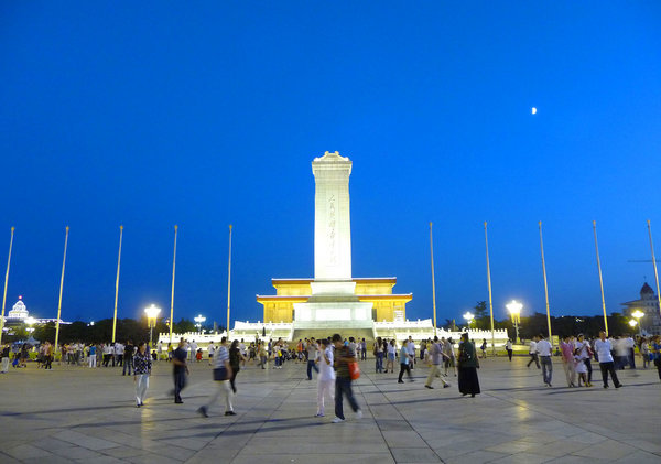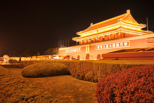 2009年8月27日晚,国庆庆典演练前的天安门广场。(资料图片)