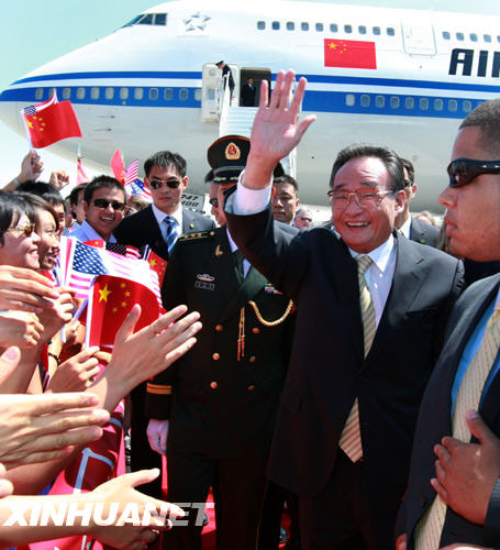 应美国国会众议院议长佩洛西的邀请,中国全国人大常委会委员长吴邦国6日抵达菲尼克斯,开始对美国进行正式友好访问。
