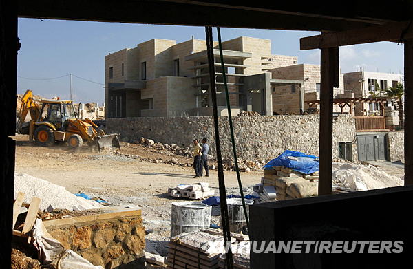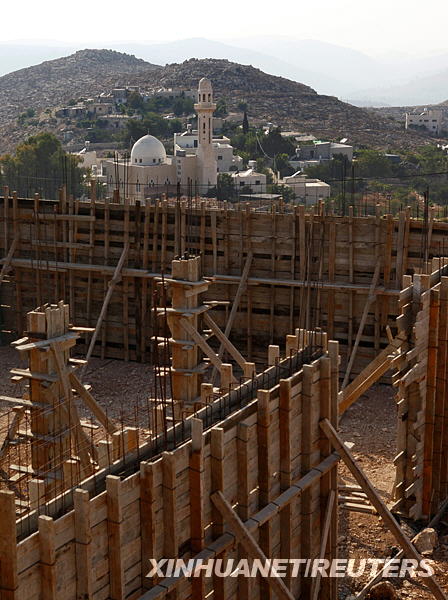 9月7日拍摄的照片显示的是在约旦河西岸一处犹太人定居点内正在修建的房屋。以色列国防部当日宣布,国防部长巴拉克已批准在约旦河西岸5个犹太人定居点内新建总共366套房屋,并将在今后几天内批准另外86套定居点房屋的建设项目。新华社/路透