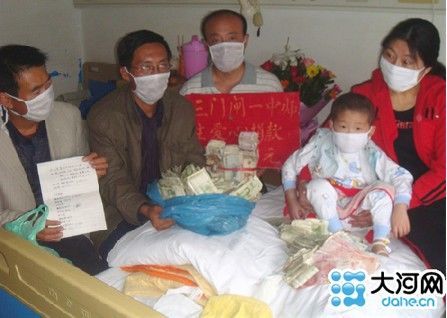短短几天的时间,三门闸乡一中1000多名师生捐款8181元,三门闸乡中心小学下属的18所小学捐款11577元。有老师捐出了自己的工资,有学生们捐出自己积攒的的零花钱。两个学校专门派出代表,连夜从汝南来到郑州,赶在教师节给王海莹夫妇送来了这份“礼物”。