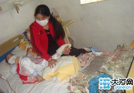 看着那些毛票、硬币,一捆捆的整钱,用塑料袋装着,沉甸甸地放在孩子的病床前,王海莹和李义夫妇感动得直掉眼泪。今天一早,连夜从汝南赶来的学校领导给他们送来了这份特殊的教师节“礼物”——1.9万余元的捐款,5000多份师生的爱心。