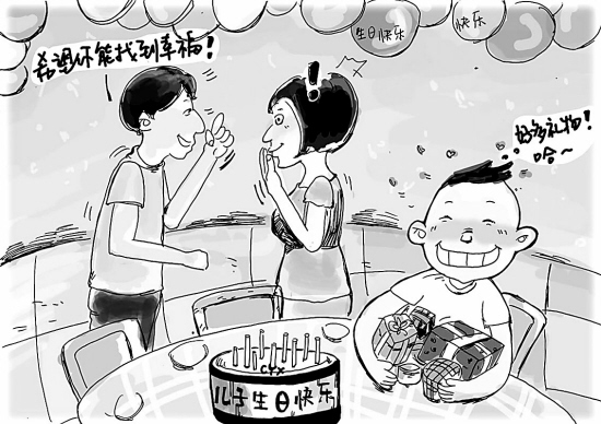 细心的李先生专门为孩子定做了一个蛋糕,上面用奶油写着“爸妈祝儿子生日快乐”。