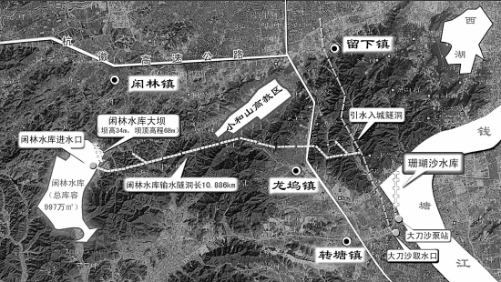 目前闲林水库的大刀沙泵站、大清谷隧道接口段工程和库区道路改建(闲祝公路改建)工程等项目建设已经先行实施。
