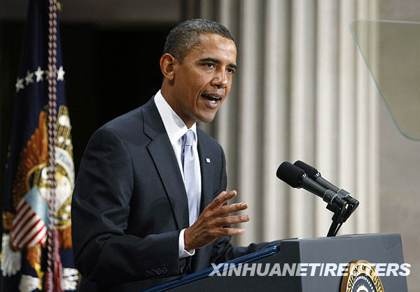 9月14日,在美国纽约华尔街的联邦大厅,美国总统奥巴马发表关于金融危机一周年的演讲。当日,奥巴马重申金融监管改革的原则,并呼吁国会尽快批准该方案。 |