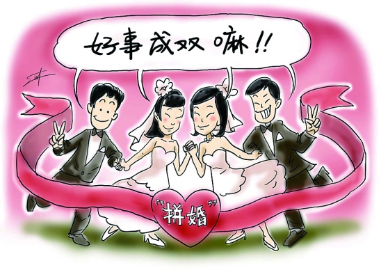这里所说的拼婚其实就是拼在一起置办结婚用品、做好婚前准备,比如婚宴在同一个地点却在不同时间举办,婚后蜜月同团旅游,以及从婚庆宴席的预订、喜糖烟酒的采购,到婚纱摄影、新娘彩妆、婚庆主持等的“资源共享”。