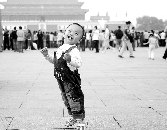 下午3点40分,天安门广场上兴奋的孩子。