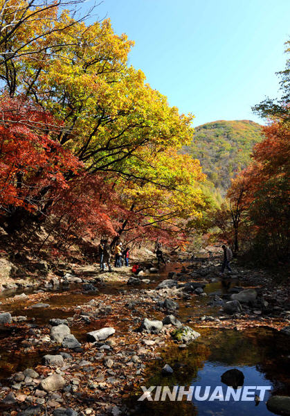中秋时节,辽宁本溪层林尽染:枫叶红得醉人,油松翠绿,落叶松和柞树一片金黄。五彩斑斓的秋色引得游人流连忘返。新华社记者 李钢摄