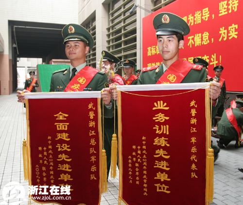 “5天前,我们在天安门广场也演奏过这首歌。”武警浙江总队军乐团团长王森华说,在庆典上,他们一共演奏了19首阅兵曲,26首群众游行乐曲,是武警部队唯一一支被表彰为“业务训练先进单位”的军乐团,乐队中的4人被表彰为“业务训练标兵”、7人表彰为“业务训练先进个人”。